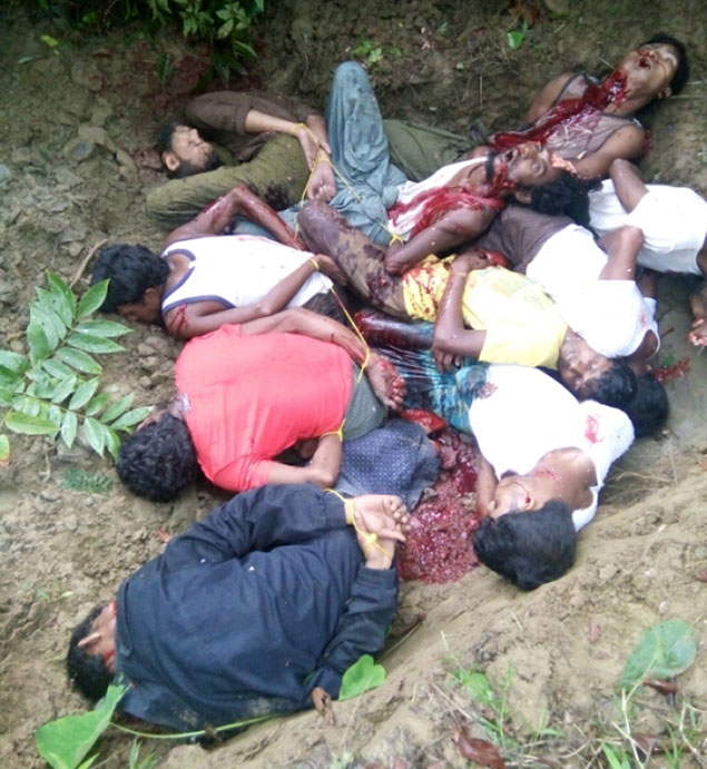 গত ২ সেপ্টেম্বের বৌদ্ধ গ্রামবাসীকে সঙ্গে নিয়ে মিয়ানমারের সেনারা ১০ রোহিঙ্গাকে নির্মমভাবে হত্যা করে। রাখাইন রাজ্যের ওই ঘটনার ছবি, তথ্য-প্রমাণসহ হাজির করেছে সংবাদ সংস্থা রয়টার্স। কীভাবে তারা এসব প্রমাণ হাতে পেয়েছে এরও বিস্তারিত তুলে ধরেছে রিপোর্টটিতে। প্রতিবেদনটি তৈরিতে সংস্থাটির চার সাংবাদিক ওয়া লো, চ সোয়ে উ, সাইমন লুইস ও অ্যান্টোনি স্লোডকোস্কি ছিলেন। তাদের মধ্য থেকে ওয়া লোন এবং চ সোয়ে উ-কে গত মাস থেকে গ্রেফতার করে রেখেছে মিয়ানমারের পুলিশ। জবান এর পাঠকদের জন্য রয়টার্স এর এই বিশেষ প্রতিবেদনটির পুরোটা অনুবাদ করে দেয়া হলো।