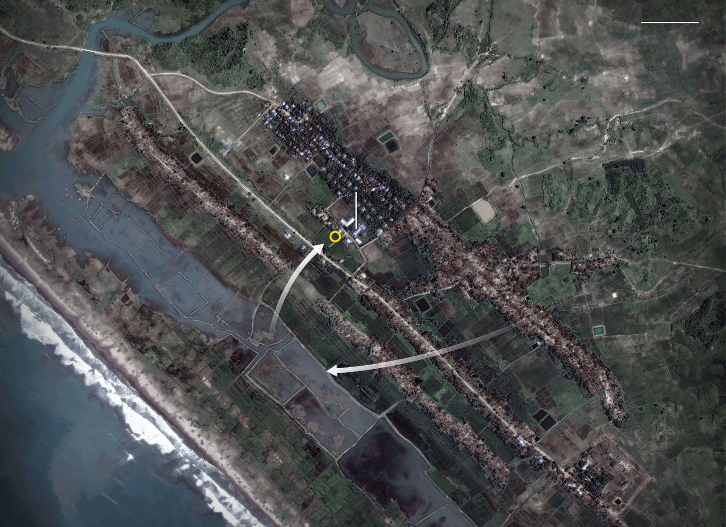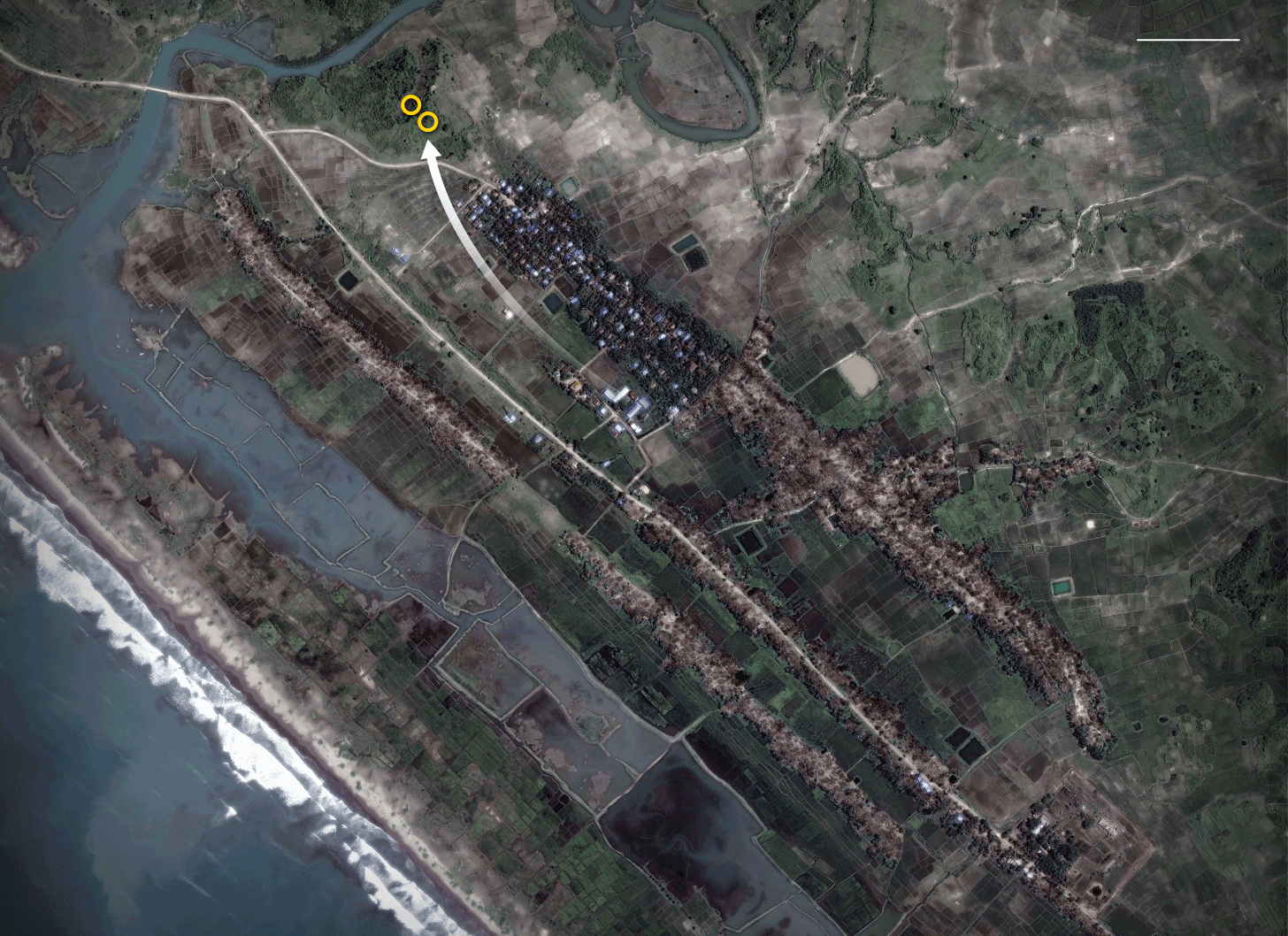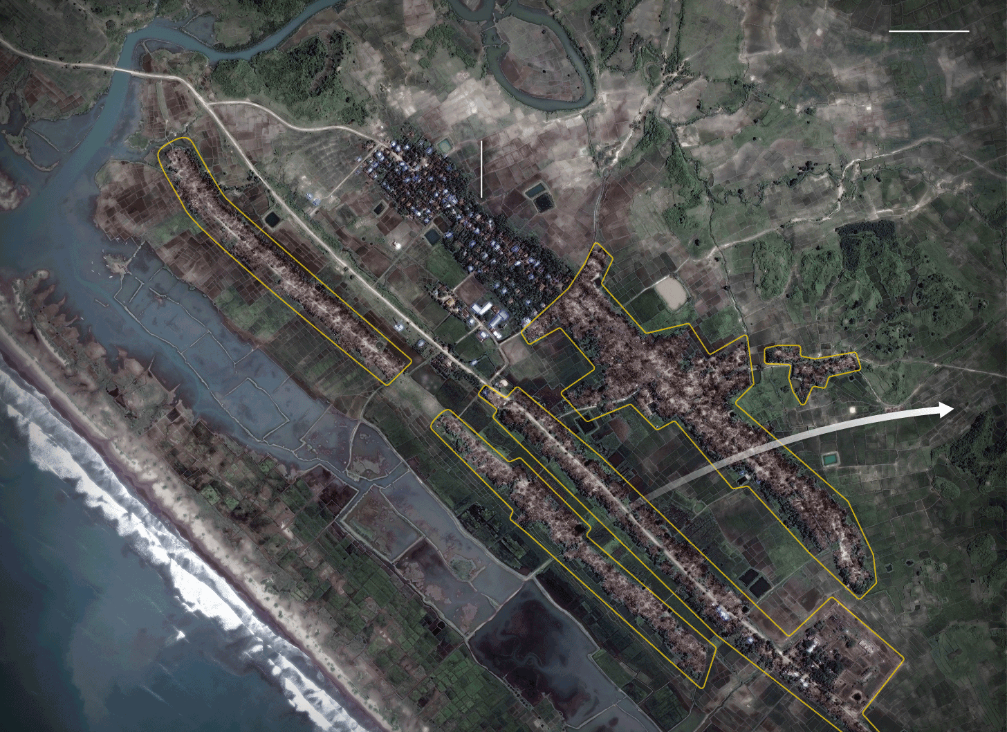 জাতিসংঘ অপারেশনাল স্যাটেলাইট অ্যাপ্লিকেশন কার্যক্রমের তথ্য থেকে জানা গেছে, ১১০ কিলোমিটারজুড়ে রোহিঙ্গা আবাসভূমি জ্বালিয়ে দেয়া হয়েছে। নিউ ইয়র্ক ভিত্তিক হিউম্যান রাইটস ওয়াচ-এর মতে, গত ২৫ আগস্ট থেকে ৩ মাস ধরে ৩৫০টির বেশি গ্রাম ওই হামলার শিকার হয়েছে।