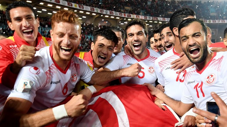 বিশ্বকাপের আসরযাত্রা নিশ্চিত করার পর উল্লাসরত তিউনিসিয়ার ফুটবলাররা