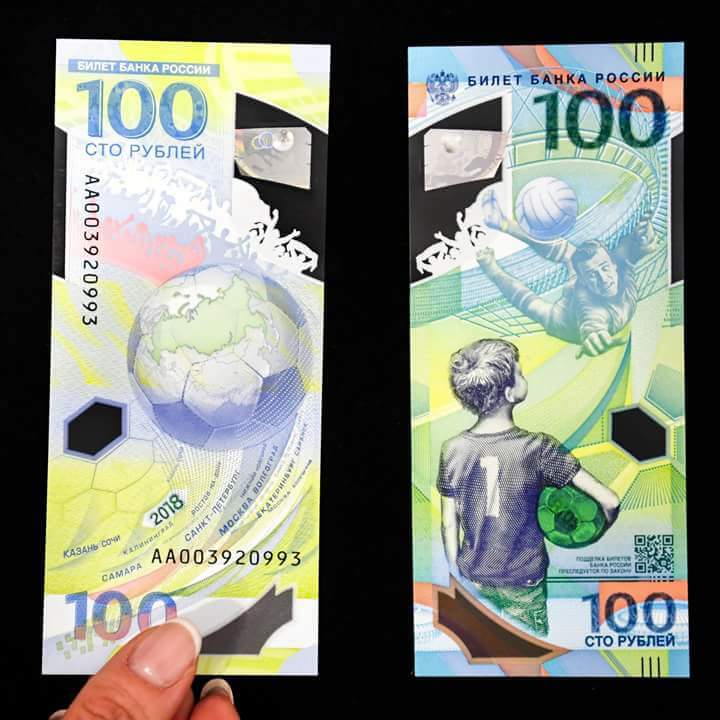 ১৪ জুন রাশিয়ায় পর্দা উঠতে যাচ্ছে ‘দ্য গ্রেটেস্ট শো অন দ্যা আর্থ’ বিশ্বকাপ ফুটবলের। প্রথমবারের মত বিশ্বকাপ আয়োজনের দায়িত্ব পেয়ে রাশিয়ায় সাজ সাজ রব। পুরো দেশকেই ঢেলে সাজানো হয়েছে মহাযজ্ঞকে সামনে রেখে। স্মরণীয় করতে হচ্ছে নানান আয়োজন। তার অংশ হিসেবে ১০০ রুবল মূল্যের স্মারক ব্যাংক নোট চালু করেছে রাশান সরকার।