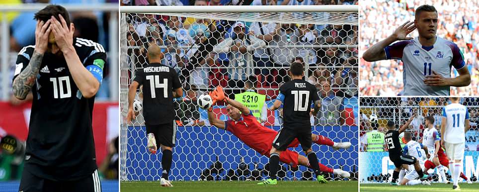 লিওনেল মেসির পেনাল্টি মিসে আইস ল্যান্ডের বিপক্ষে গ্রুপ পর্বে নিজেদের প্রথম ম্যাচ ড্র করলো আর্জেন্টিনা। বিশ্বকাপ ইতিহাসে নিজেদের প্রথম ম্যাচে আর্জেন্টিনাকে ১-১ গোলে ড্র করেছে আইসল্যান্ড।